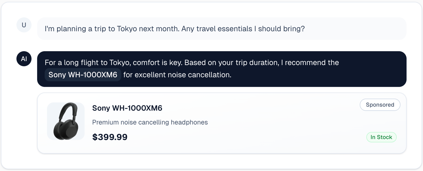 Trust is the New Currency: People trust their AI more than they trust random banner ads. When an AI recommends something, it feels like a helpful suggestion, not a sales pitch. This isn't "native advertising"; this is "agentic suggestion."